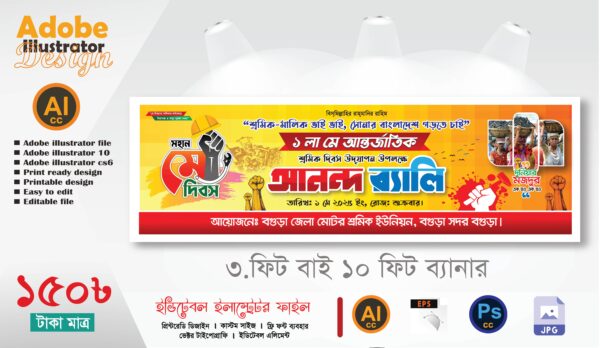 1 মে দিবস ব্যানার ডিজাইন 2025 (মোটর শ্রমিক প্রযোজ্য)